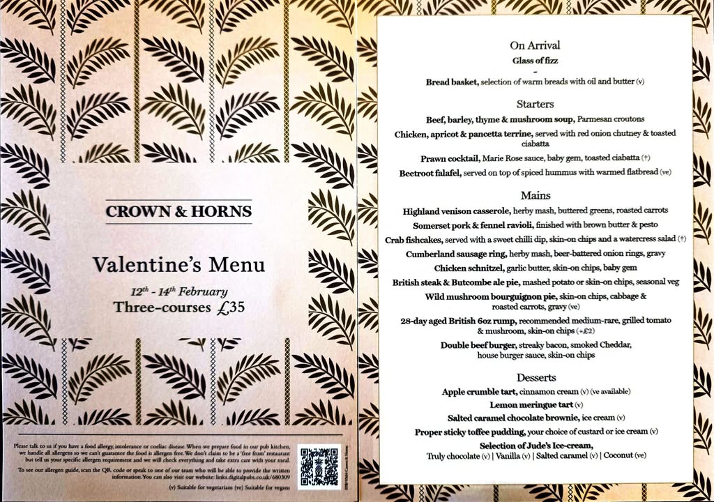 ❤️ Valentine’s Day Set Menu ❤️ 3-Course Meal – Per Person Celebrate love with a romantic dining experience. ✨ Valentine’s Special – 3 Courses Starter – Choice from our menu Main Course – Choice from our menu Dessert – Sweet Valentine’s dessert 💰 Set Price: £35 per person 📅 Available on Valentine’s Day 🍽️ Dine-in only 💑 Perfect for couples 📞 Advance booking recommended – limited tables available